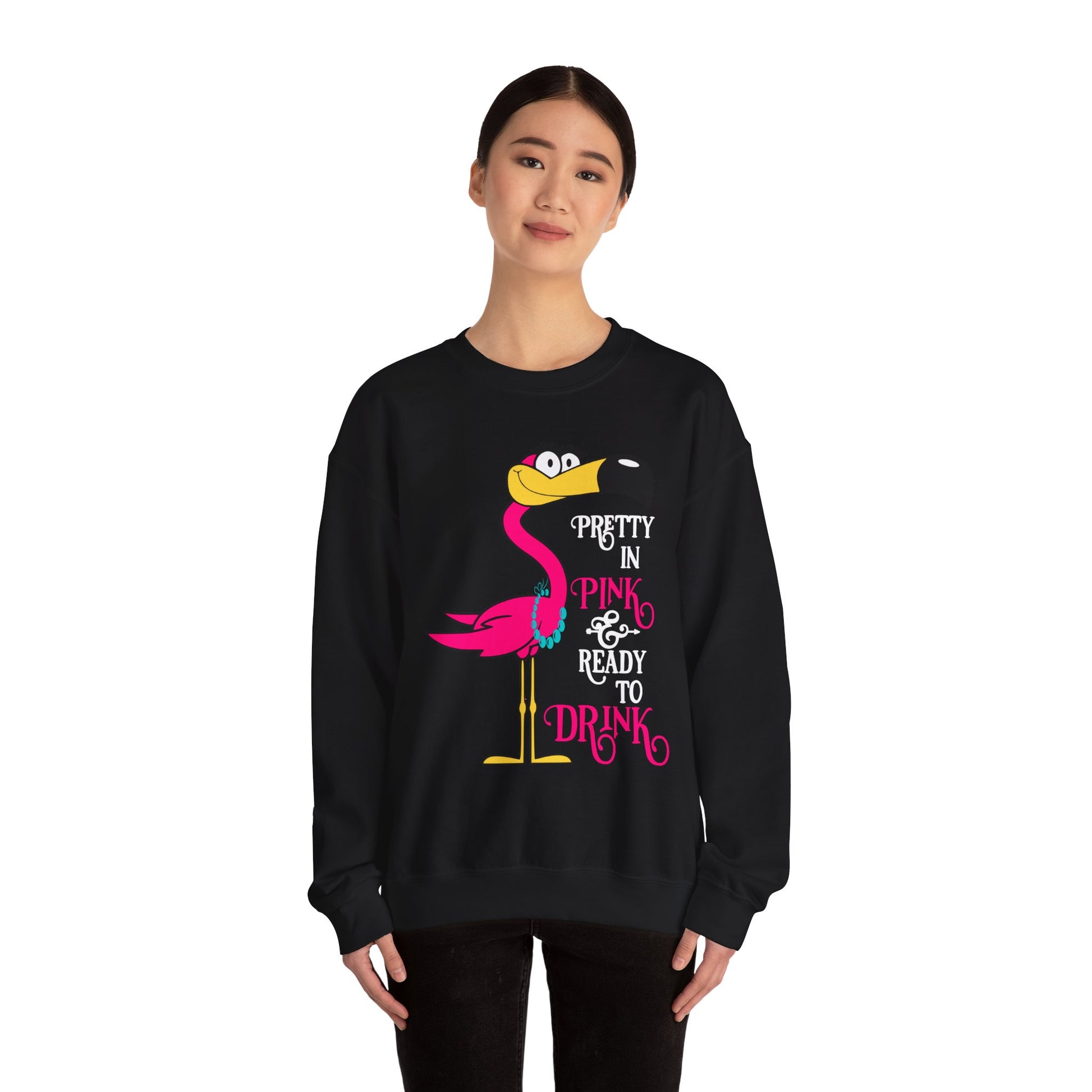 Pretty in Pink Flamingo Drinking Humor Tropical Party Shirt — Sweatshirt